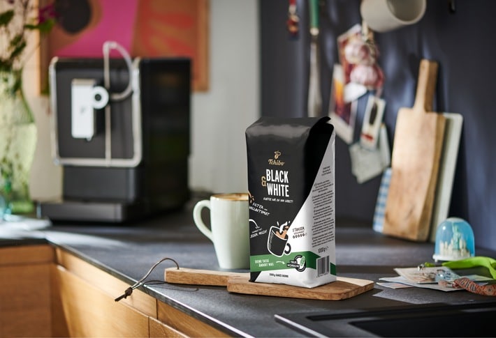 Starker Geschmack, nachhaltig, transparent und unkompliziert – das ist BLACK & WHITE Kaffee von Tchibo. Er ist der ideale Begleiter für alle Lebenslagen: morgens, mittags, abends, allein, mit Freunden, zubereitet im Vollautomaten oder im Filter, schwarz oder für alle Milchvarianten. So vielfältig wie das Leben!