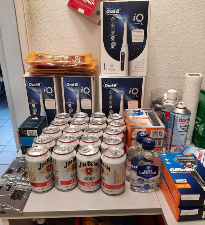 Die Bundespolizei wurde über den Sachverhalt informiert und sprach kurz darauf den Mann an und kontrollierte ihn. Dieser gab zu die Waren gestohlen zu haben. Zur Feststellung der Identität des Mannes, wurde dieser aufgefordert die Polizisten zur Dienststelle zu begleiten. Anfangs folgte er den Beamten, doch dann flüchtete er unvermittelt. Die Streife holte den Flüchtenden ein und nahm ihn in Gewahrsam. Da der Mann sich zudem gegen die Maßnahme wehrte, wurde er gefesselt und zur Dienststelle verbracht. Dort konnte festgestellt werden, dass es sich um einen 44-jährigen Litauer handelte und er Waren im Wert von 617 Euro gestohlen hatte. Ein freiwillig durchgeführter Atemalkoholtest ergab 1,87 Promille.