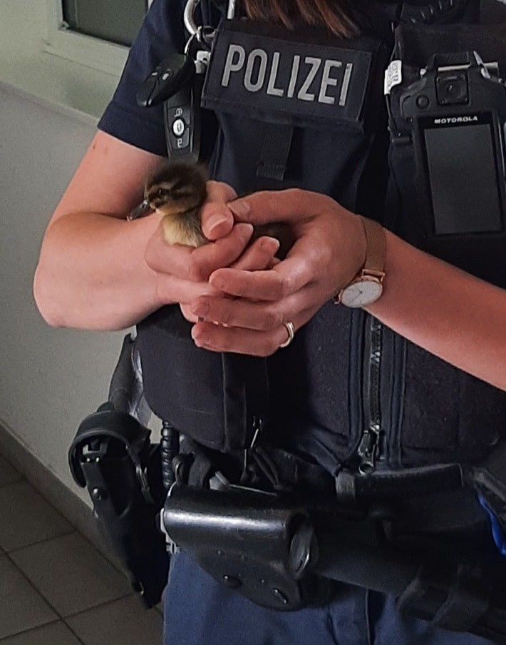 In einer Regionalbahn wurde am Mittag des 3. Juli 2023 eine Tierschützerin aufmerksam, als sie Piepsgeräusche hörte und ein Mädchen mit einem Entenküken in den Händen entdeckte. Zum Glück für das Küken konnte die Frau das Mädchen überzeugen, dass das Tier professionelle Hilfe brauche und sie ihr dieses überlassen solle. Die Frau informierte die Bundespolizei über den Sachverhalt und wurde von einer Streife in Bad Kreuznach in Empfang genommen. Die Polizisten konnten mit Hilfe des Tierheims Bad Kreuznach eine Auffangstation in Waldalgesheim kontaktieren, wohin sie das Küken zur weiteren artgerechten Versorgung brachten.