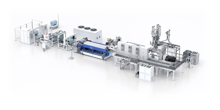 Schließlich kann das Verfahren auch als „grüne Folienproduktionsanlage“ bezeichnet werden, da es die Zwischenschicht und das Trägerpapier einspart, kein energieaufwändiges Glühsystem besitzt, einen geschlossenen Kühlkreislauf hat und mit einem Niedrigtemperatur-Extrusionsverfahren arbeitet.