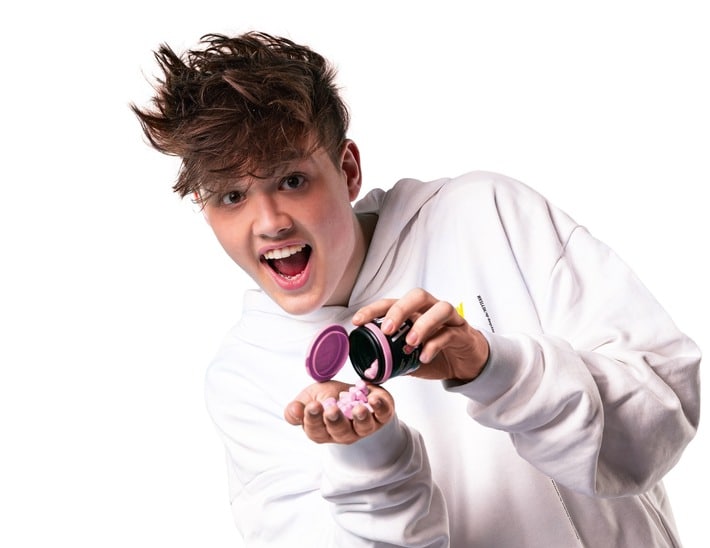 Die HEYYY Kaugummis hat Moritz zusammen mit dem Berliner Produkt Start-up LIMITD entwickelt. Das Besondere: Sie verfügen über eine extra Portion Crunch und der Geschmack ist nicht nur intensiv, sondern hält auch lange an. Sie sind übertrieben fruchtig, lecker und frisch und alle Sorten garantieren eine Geschmacksexplosion.