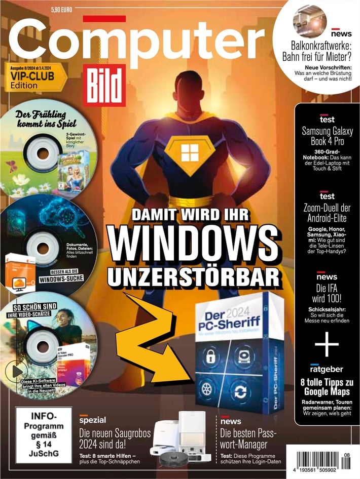 Den vollständigen Vergleichstest lesen Sie in der COMPUTER BILD-Ausgabe 8/2024, die ab 5. April 2024 im Handel verfügbar ist.