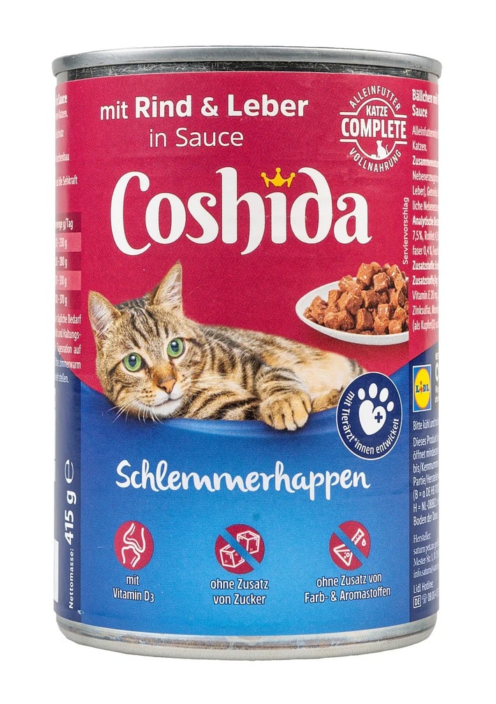 Auch im Near-Food-Bereich punktet Lidl zum wiederholten Male: „Top-Futter zu Top-Preis“ titelt die Stiftung Warentest in ihrer aktuellen Ausgabe (05/2024) und bescheinigt dem Katzen-Nassfutter „Coshida Schlemmerhappen mit Rind und Leber in Sauce“ ein sehr gutes Gesamturteil. Mit einem Preis von 0,55 Euro pro Dose (415 g) versorgt das Produkt der Lidl-Eigenmarke ausgewachsene Katzen ausgewogen mit allen erforderlichen Nährstoffen. Dabei helfen die stimmigen Fütterungsempfehlungen auf der Verpackung. Darüber hinaus ist das Lidl-Produkt mit 0,37 Euro pro Tagesration eines der günstigeren Produkte im Test.