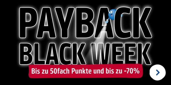 Vom 18. bis zum 28. November können PAYBACK Kund:innen bei der „Black Week“ Weihnachtsshoppen und sparen. Mehr als 100 teilnehmende Partner sind in diesem Jahr dabei, etwa ABOUT YOU, Media Markt, Tchibo, Dyson, adidas, booking.com, Douglas, H&M, OTTO und SATURN. Neu in diesem Jahr ist die tägliche Gewinnchance auf 100.000 PAYBACK Punkte für jeden Online Einkauf auf PAYBACK.de. Eine Übersicht aller Angebote gibt es unter PAYBACK.de/blackweek. Die Angebote und Coupons gibt es auch in der PAYBACK App, die aktuell von 11 Millionen User:innen genutzt wird.
