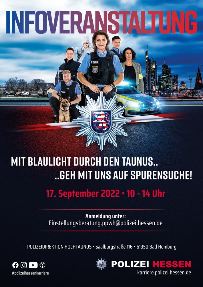 Am Samstag, dem 17. September 2022, öffnet die Polizeidirektion Hochtaunus ihre Pforten und hofft auf Unterstützung.