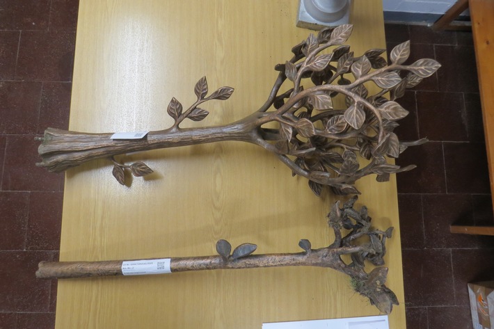 Ein Spaziergänger hatte die Gegenstände am Samstag des vorletzten Wochenendes hinter einer Hecke am Friedhof „Am Sieggraben“ entdeckt und die Polizei informiert. Die Beamten stellten die Gegenstände sicher, da sie keinem Grab auf dem Friedhof direkt zugordnet werde konnten. Nun sucht die Polizei die Eigentümer der zwei bronzefarbenen Metallbäume sowie einer massiven Vase aus Metall.