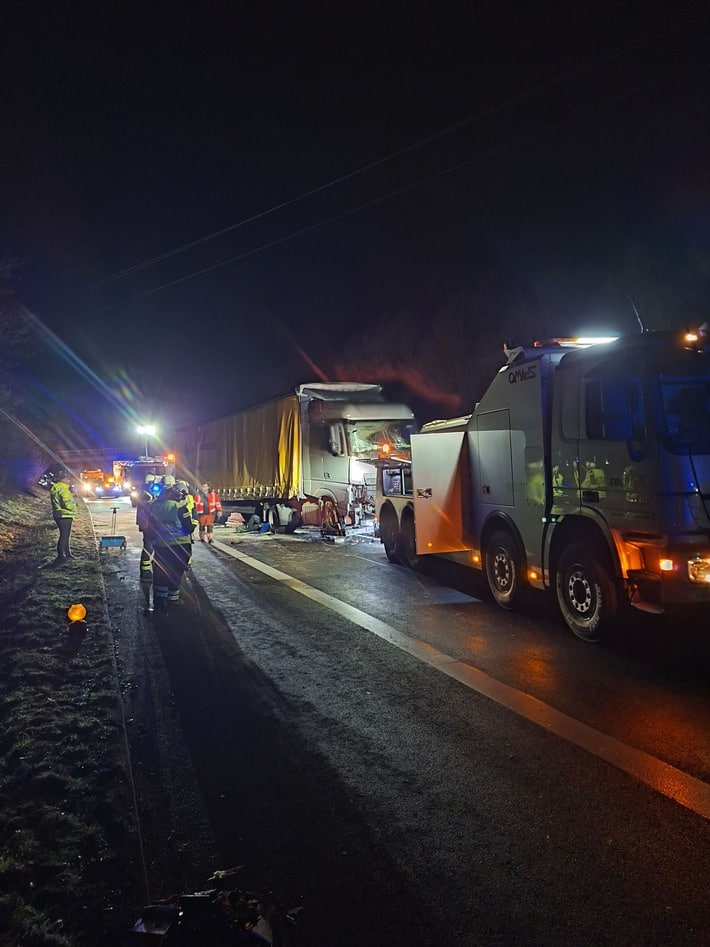 POL-OF: Folgenreicher Unfall zwischen zwei Sattelzügen – eine Person verletzt