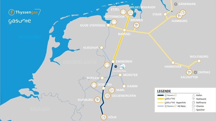Von der Nordsee bis in die Region Rhein-Ruhr: Fernleitungsnetzbetreiber Gasunie und Thyssengas schaffen Nord-Süd-Korridor für Wasserstoff